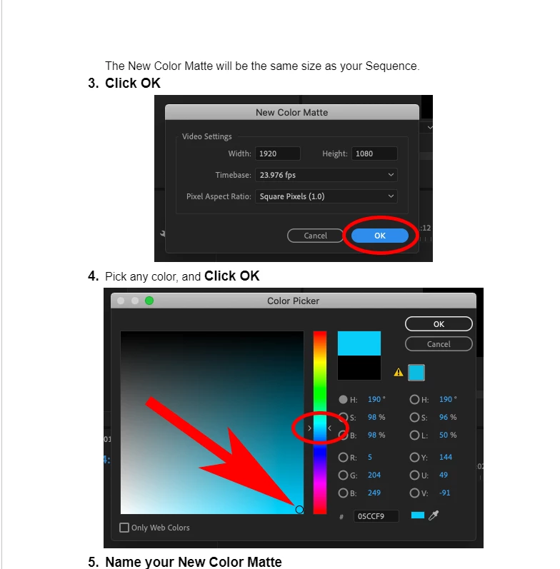 Ir'a happened a couple times now on different projects. I open premiere, and use File\new\color matte, the color picker comes up, I select a color, assign a new name...click ok and <poof!> gone.