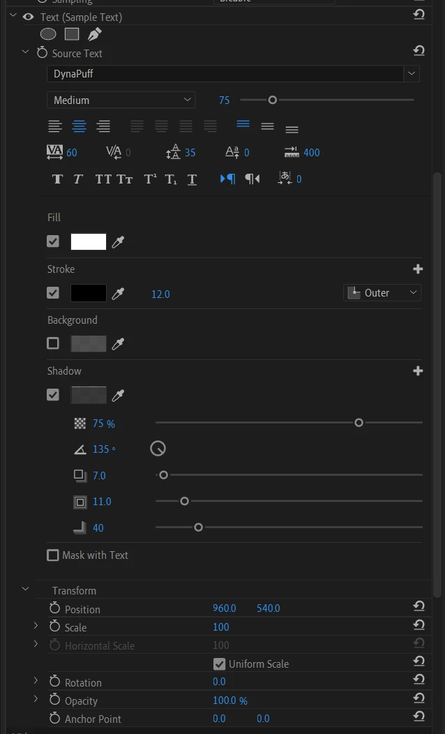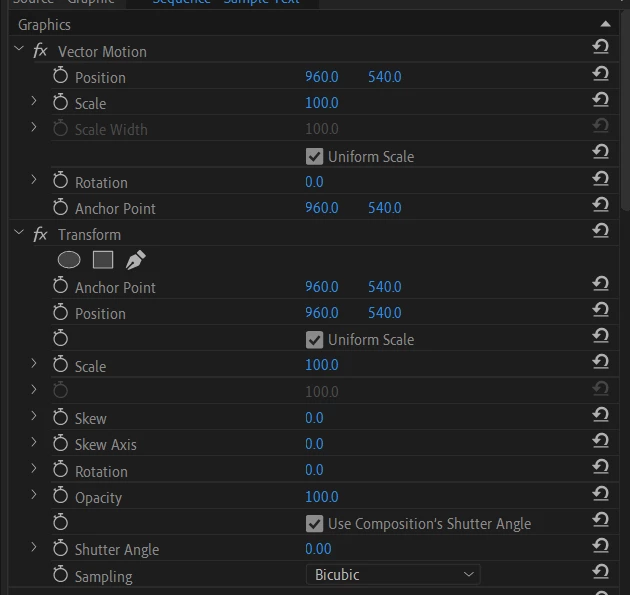 Hello! I'm using the "transform" effect to animate text so that I can add motion blur, but I'm running into an issue. When I change the position using the transform controls, it only moves the words themselves and not the box, which makes it difficult to edit the text later on. I've spent the last several hours researching and troubleshooting, but I've still not been able to fix it. Below I've attached screenshots of my effect control tabs, as well as a Youtube video showing the problem. I'm not sure if this is relevant, but I made the text box with a single click (instead of clicking and dragging). I'm also on Windows and using Premiere Pro version 24.5. Any help is greatly appreciated!