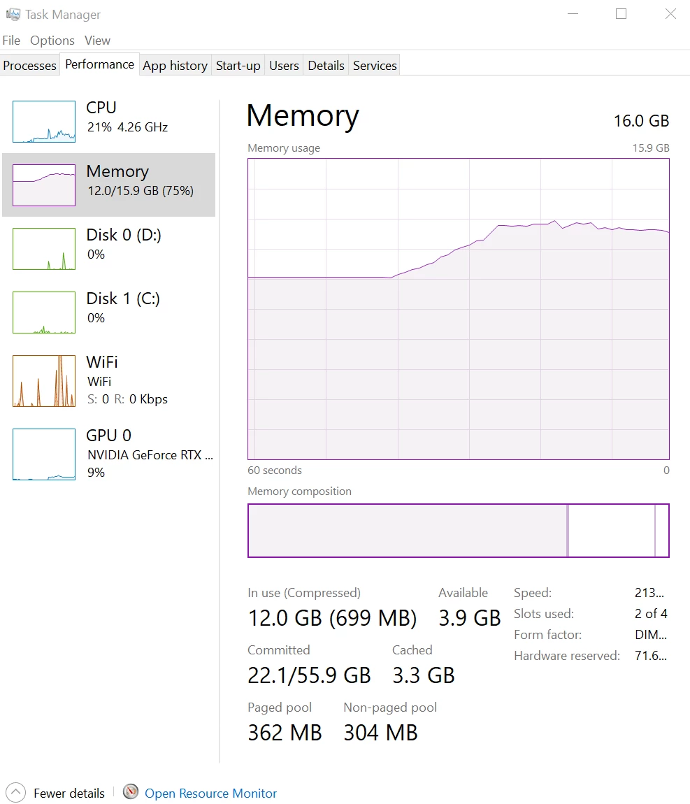 I edit for a living so it is frustrating that any change in my timeline on Premiere Pro, it lags.  I have to constantly wait a few seconds with each change. Obviously, this isn't sustainable so any help would be REALLY appreciated. I have followed every youtube tutorial on the settings inside the software to make it run fast and nothing has helped. Today, I ran the task manager (shown below) and this is when I realized when I  play the timeline in the software, the memory shoots up to almost fall capacity, so I'm guessing this is the main problem... I need more RAM. I'm Just wondering if it could be anything else? Do I need an internal SSD storage, if so what for? Could it be the latest prem pro Update? What RAM should I get? Can my GPU be used more or not?