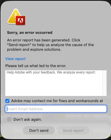 Hi, Just upgraded to Mac Mini M4 and PPro 25.5.0. I get constant pop up windows "Sorry, an error occurred." "An error report has been generated." etc. I don't notice anything happening with the program when this occurs. (There's usually one that pops up shortly after opening PPro; periodically others appear.) I click "Send report" and continue working. Still, this is unsettling: what is going on? Is there a problem I don't see? Thanks