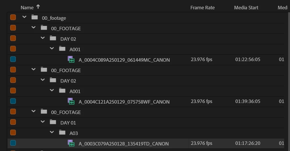 As the title says, I'm trying to figure out how to copy footage from one project to another without bringing the folder structure with it. As I copy clips from one project timeline to another project timeline, I end up with all of these extra folders. Is it possible to disable this?