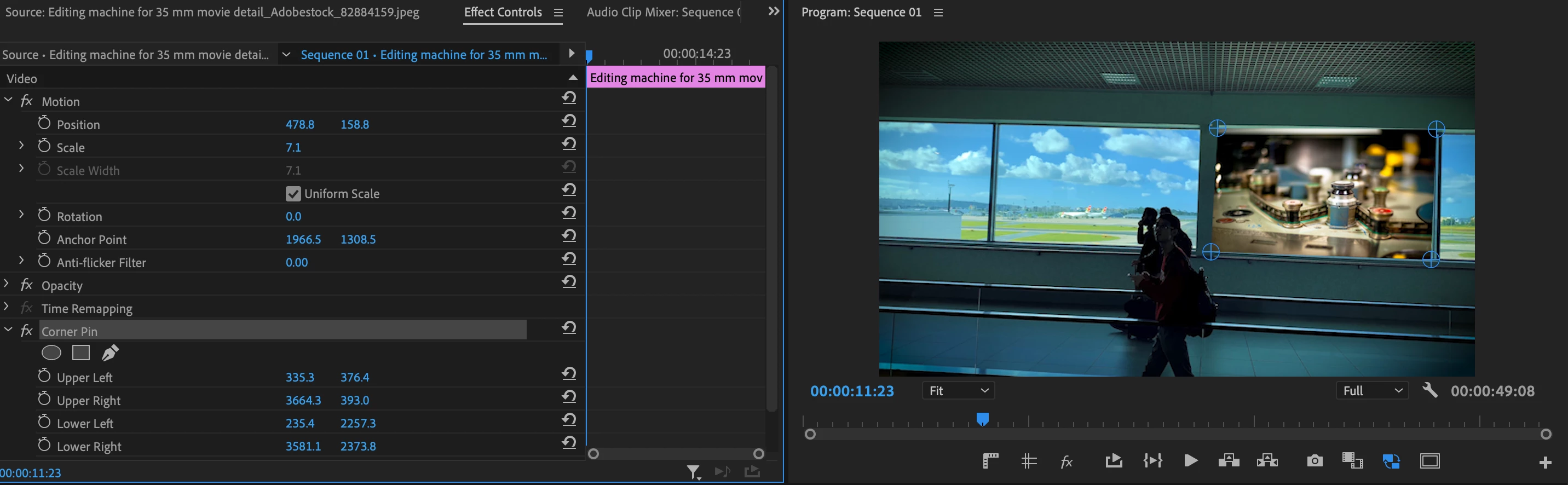 I am trying to use the corner pin effect, but the pins or anchor points (I am new to using premiere so I am not sure of the terminalogy) are not showing up