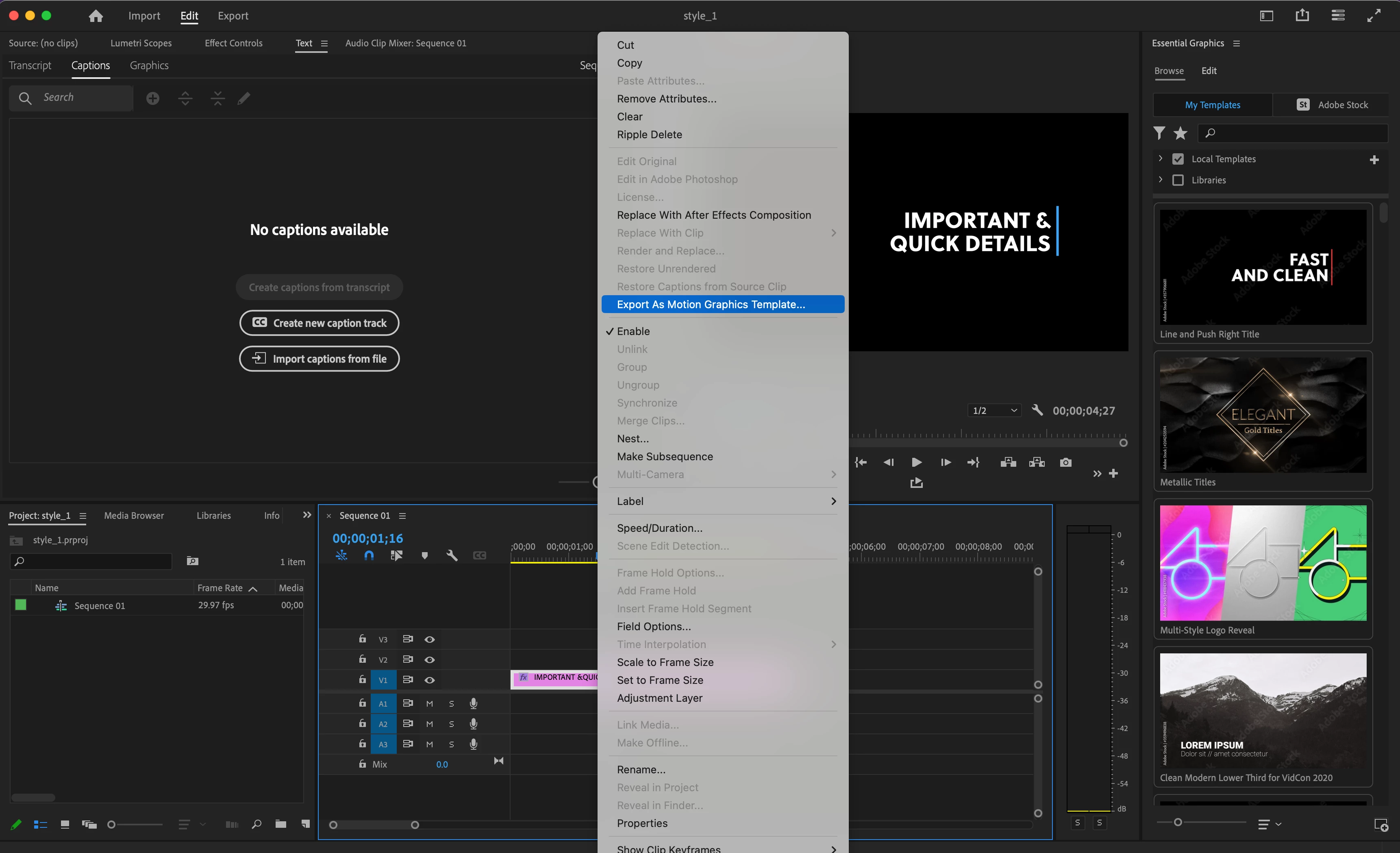 Actuellement, je duplique un ancien projet, (en supprimant les élements dont je n'ai pas besoin (la vidéo brut de l'interview)) et je replace mes éléments.