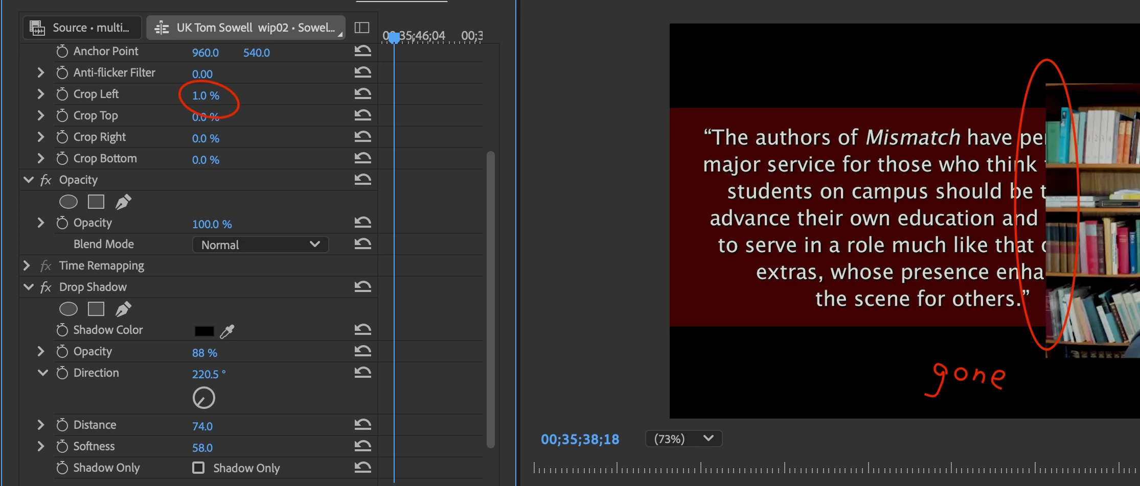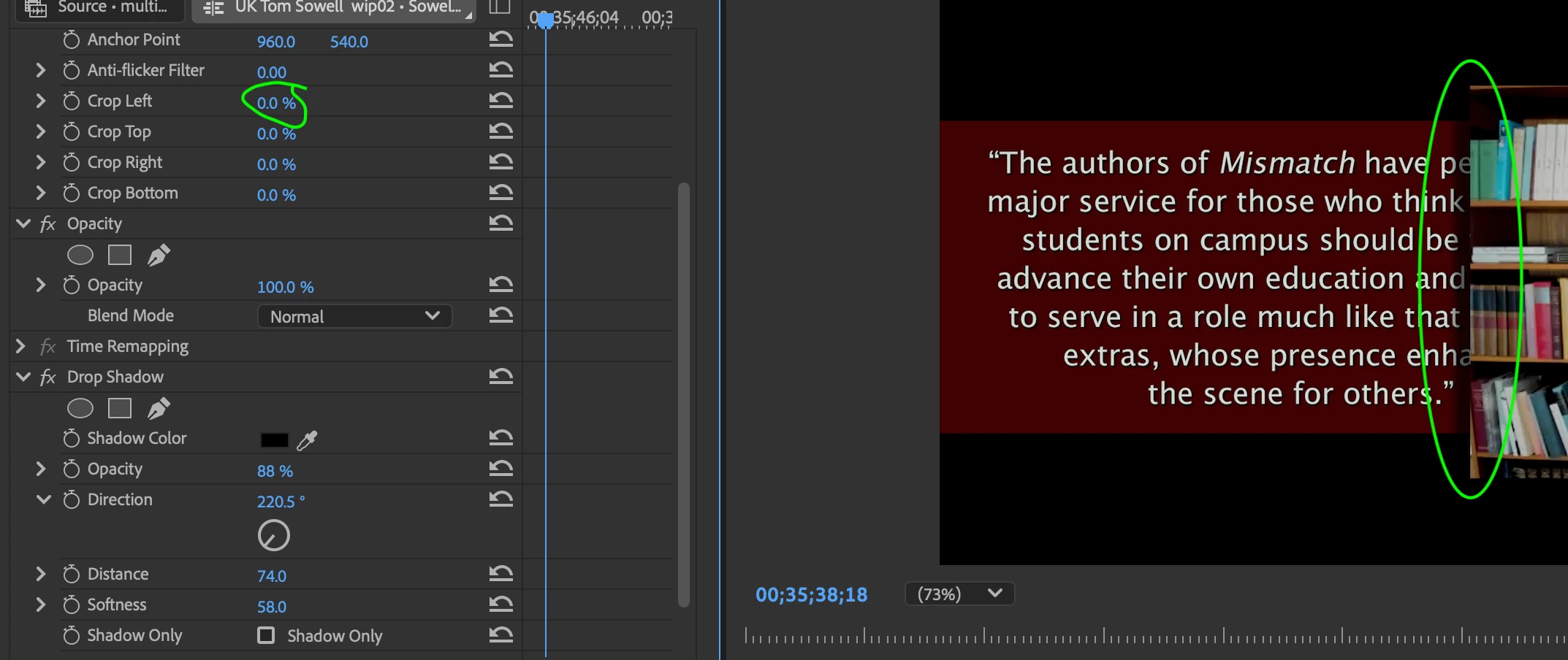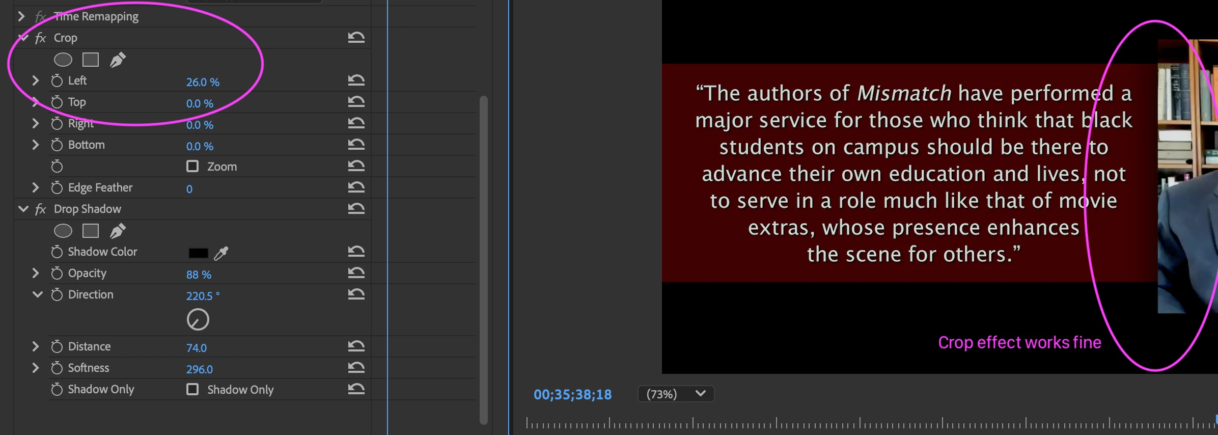 I have a drop shadow on a resized Multiclip. If I engage the new 'Crop' inside the Motion panel, it eliminates the drop shadow. So, 0% crop – the Drop Shadow is fine. But at 1% crop the shadow dissapears.