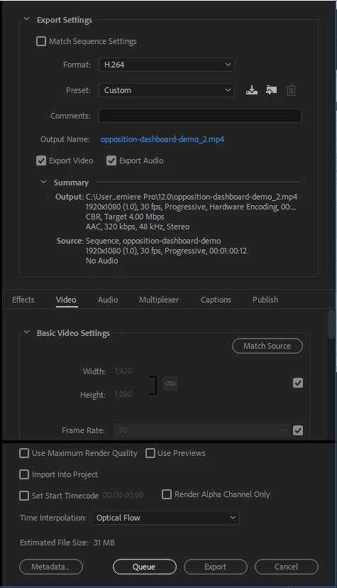 This glitch is severe in that it is very noticeable and covers the entire screen, but it only happens for the duration of the cross-dissolve. I'm attaching a capture of my Export Settings pane, if that helps: