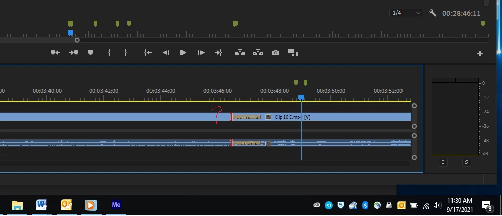 And i should add that if one place two clips butt to butt and the transition is 24 frames it is not a must to trim both clips. Trimming away 24 frames from one of the clips is enough. Or trimming away 2 frames from one clip and 22 from the other, etc, etc.