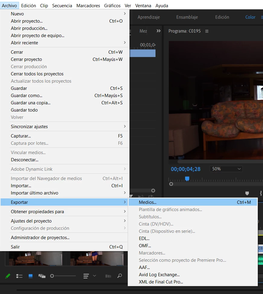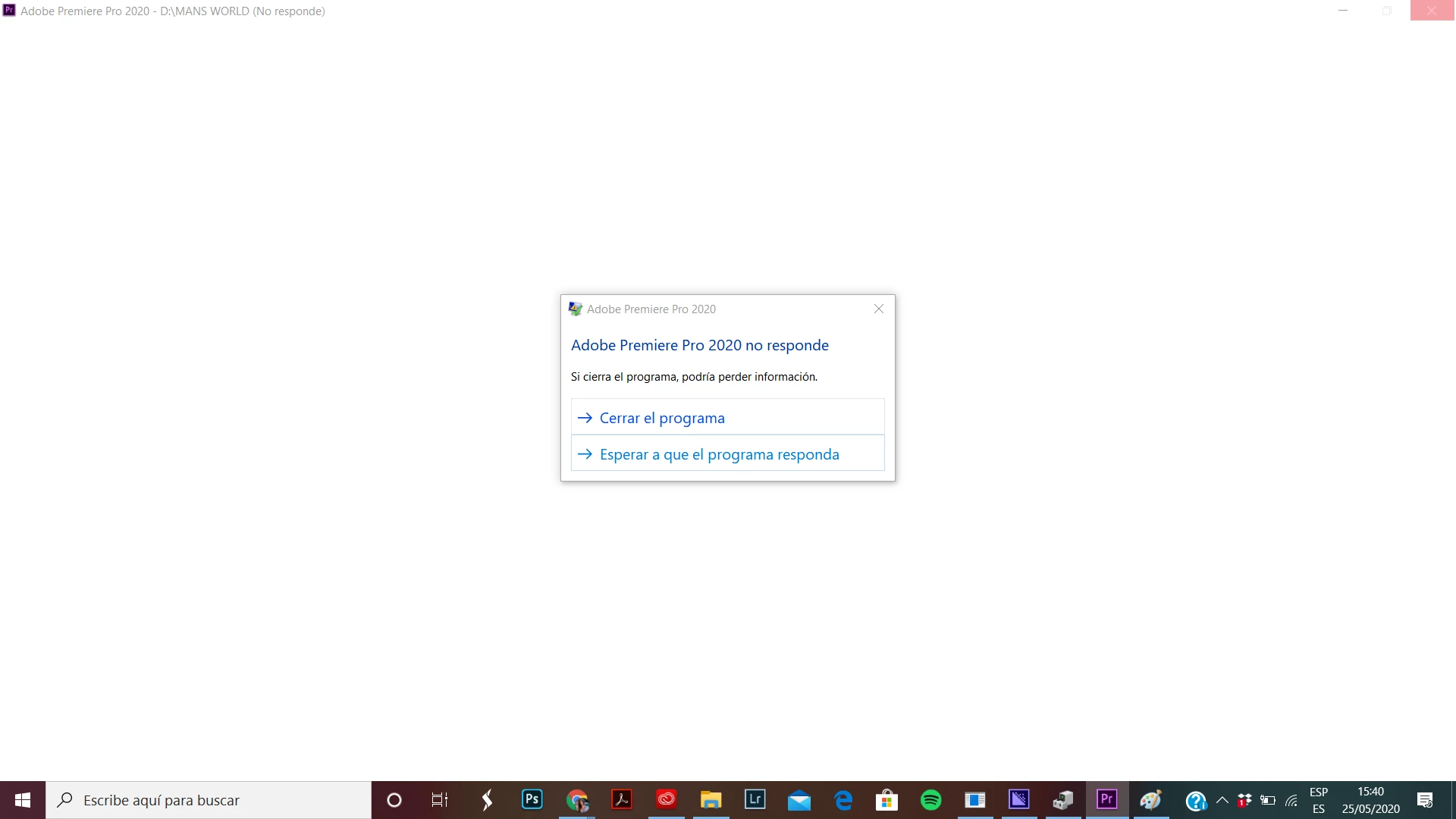Cuando hago click en "exportar medios" Premiere no abre la ventana y deja de responder el programa