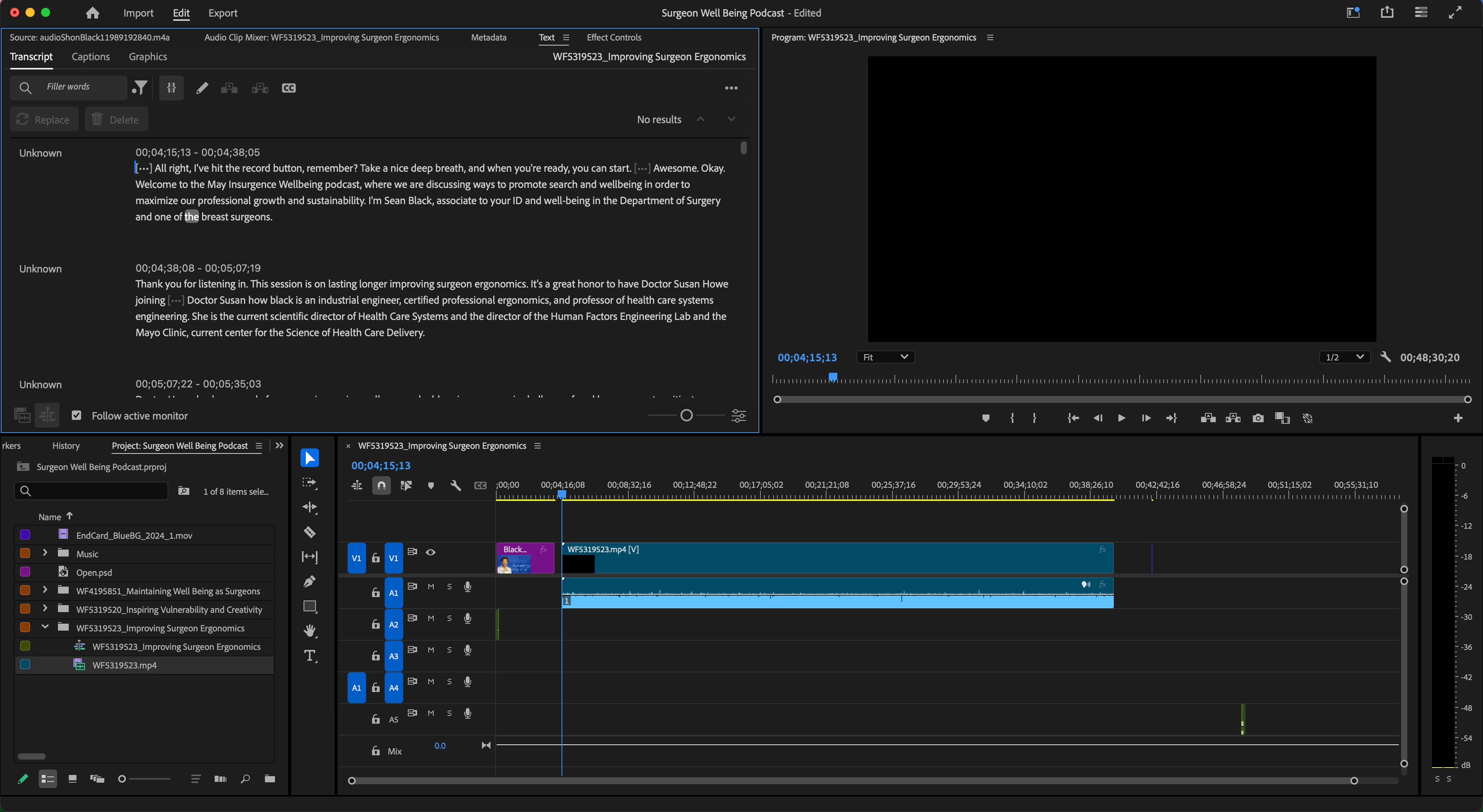 I have the "follow active monitor" check box seleted wneh I transcribe. Where can I tell if I'm in program monitor/sequence view? I usually double-click my media from the sequence and then go to "text" and transcribe.