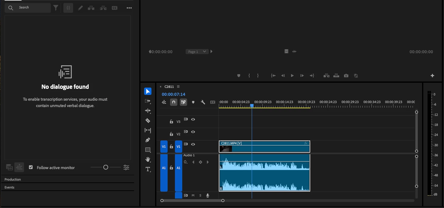 I've restarted Premiere several times and checked to ensure it was updated. I uninstalled it and installed it again. I'm stumped and have no idea what's happening. I'm using macOS Sanoma 14.6.1, and the most updated Premiere pro. I have my Shure MV7X mic connected to my Focusrite audio interface and a cord connecting the audio interface to my Sony ZV1. I will also add that I can see the audio track, and I've tagged the audio as "dialogue." I've included a screenshot of the project where only part of the audio was transcribed. Then, there is a test where "no dialogue was found."