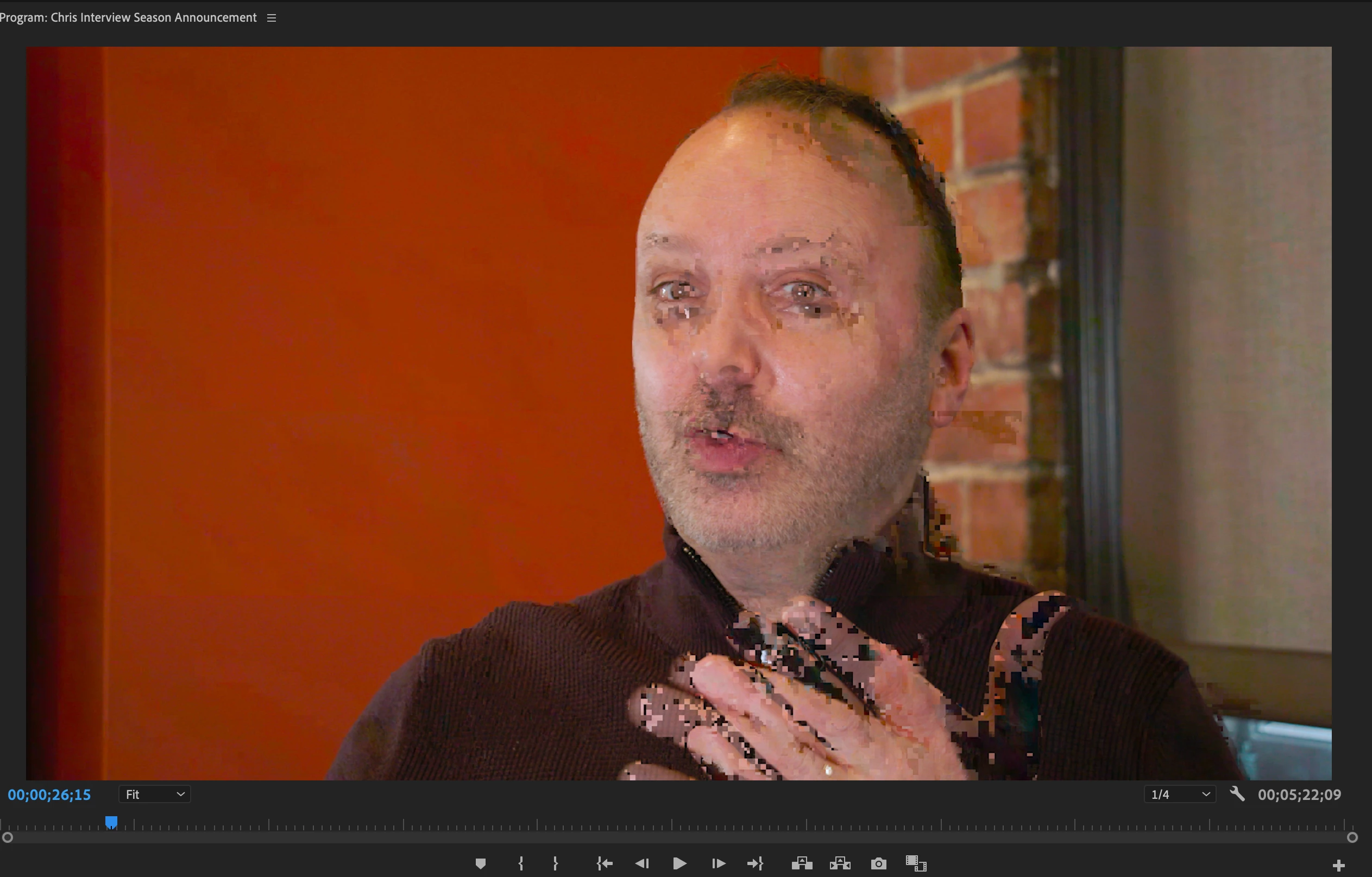 Digital artifacts on frame in sequence monitor NOT on original footage