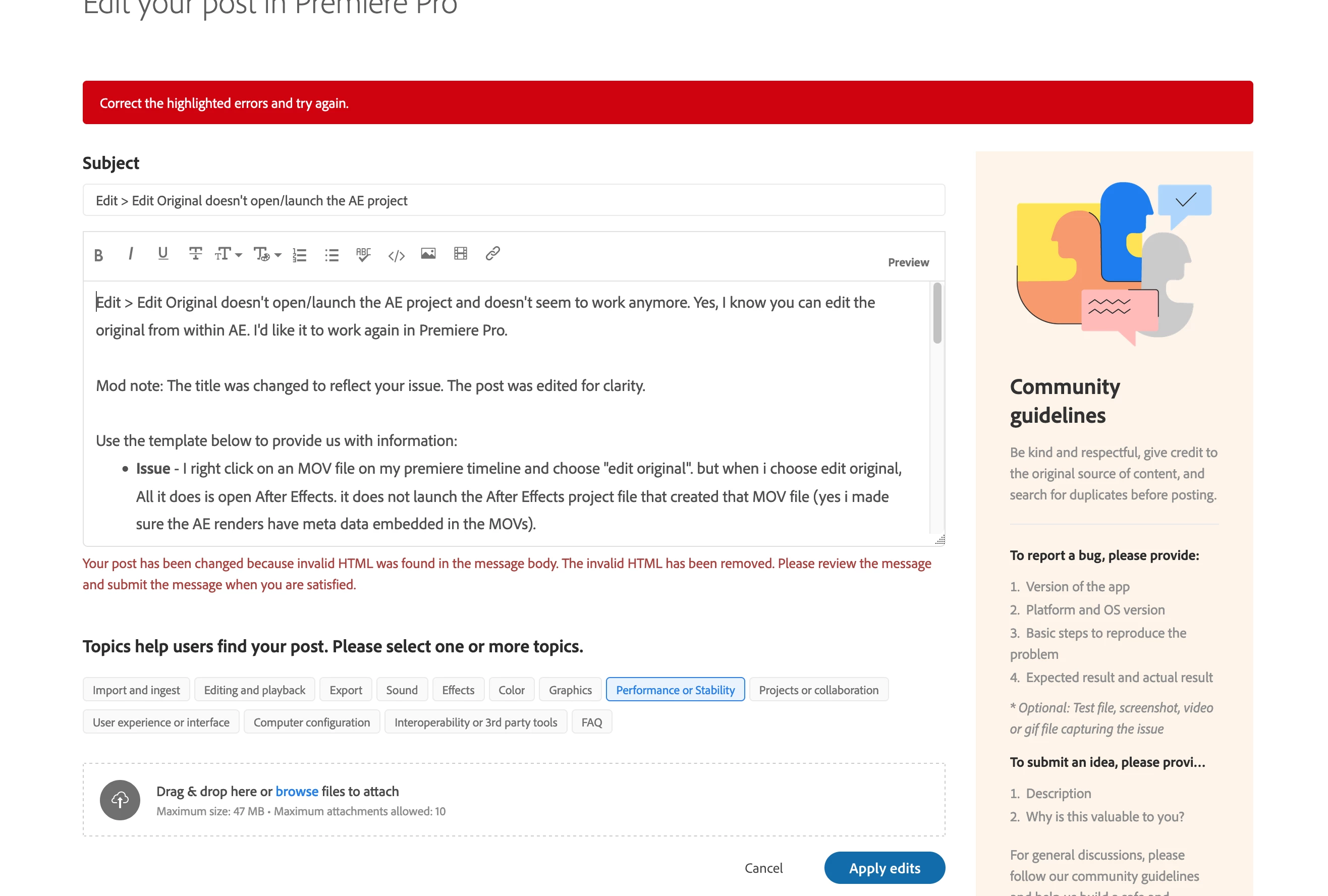 @Kevin-Monahan I keep trying to post my bug report as a reply but it doesnt show up. so I tried to add it to the top of this post but it tells me I have HTML in my text but i dont...........