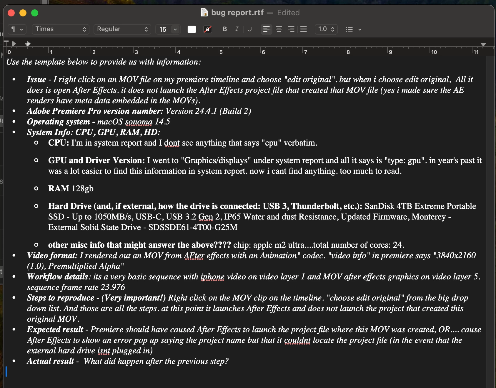 The function still does not work.  It is not a dynamic link, we render out of AE to Prores MOVs without using dyanamic linking.  In the past, the MOV itself would open the AE comp when 'Edit Original', now it does not.  I just tried it again in 2024 and it just opens the MOV in quicktime.