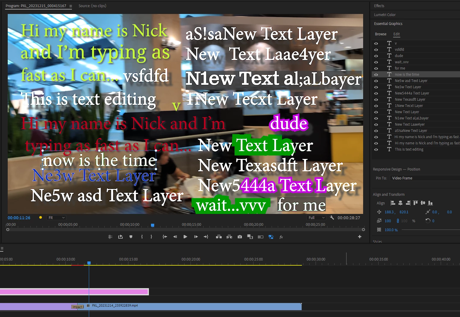 Compared to the user in the older thread, my example of the issue on an even simpler timeline (one layer of text on top of one layer of video), but that isn't stopping Premiere from falling apart at the seams!