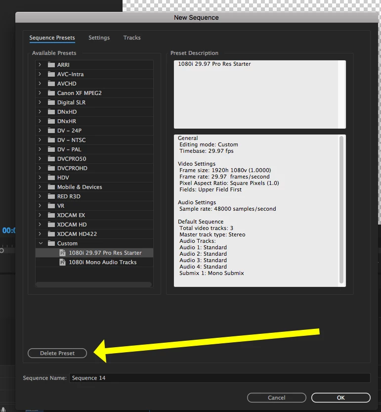 2 - delete an entire custom preset from the list of sequence presets. Is there somewhere that I can see the full list of presets available, and make changes? Or is Premiere only capable of adding new sequence presets to the already existing list?