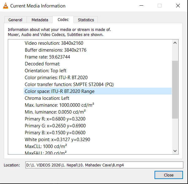 When I open this video file on my laptop in the VLC media player, it shows the correct (original) video footage (with the correct colors and exposure). See picture 1