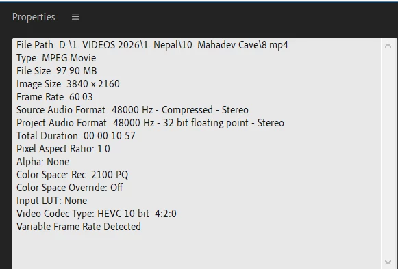 File properties in Adobe Premiere Pro (wrong footage): See picture 4