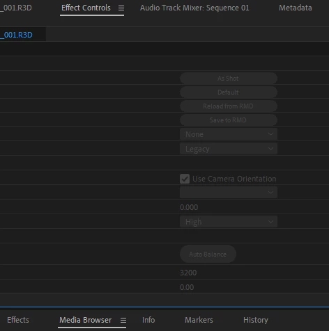 Effect Controls are inactive for RED footage in Premiere Pro 2023