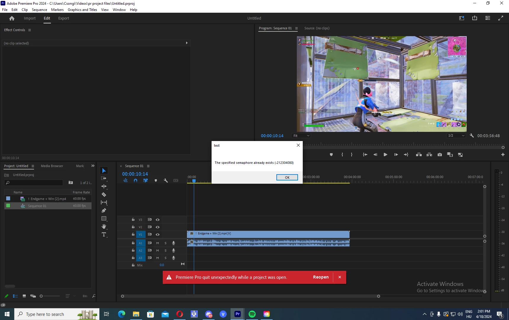 When I want to turn on effects panel it gives me that error and I don't know hoe to fix this