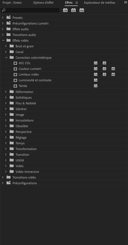 Bonjour je cherche l'effet "métamorphose de couleur" mais dans mon panneaux d'effet il n'est pas disponible quelqu'un sait pourquoi ? ( C'est pas la premiere fois que sa marrive sa m'étais déjà arriver avec un autre effet , j'ai la derniere version de premiere pro pour information ) MERCI POUR VOTRE AIDE 🙂