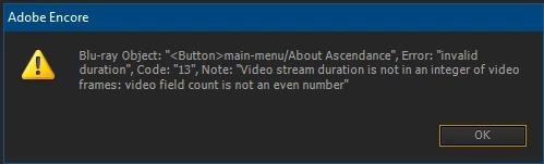 Encore CS6: Blu-ray build error 13: <button> invalid duration