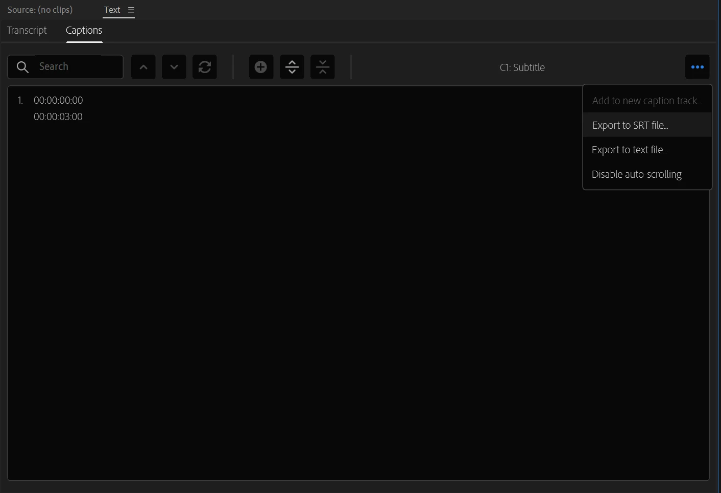 - SRT-File exportieren (Premiere kann nur Text oder CSV exportieren)