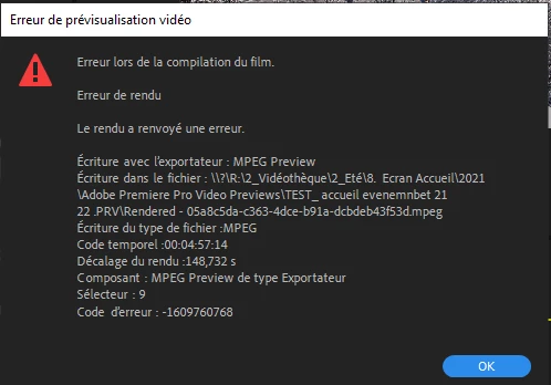 Erreur lors de la compilation du film - Code d’erreur : -1609760768