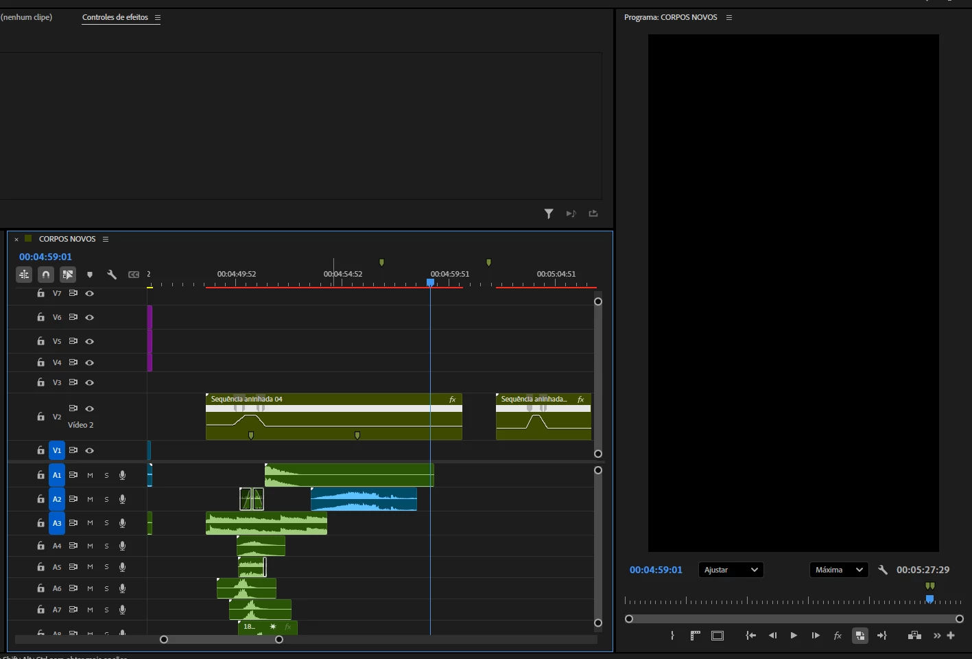 Estou editando um clipe dentro de uma sequencia aninhada, porém simplesmente a partir de um take fica com tela preta, mesmo estendendo o clipe dentro da sequencia aninhada e deixando ele com duração longa, na hora que animado alguns keyframes de velocidade a tela fica preta. Já conferi se não errei em alguma animação e simplesmente não.