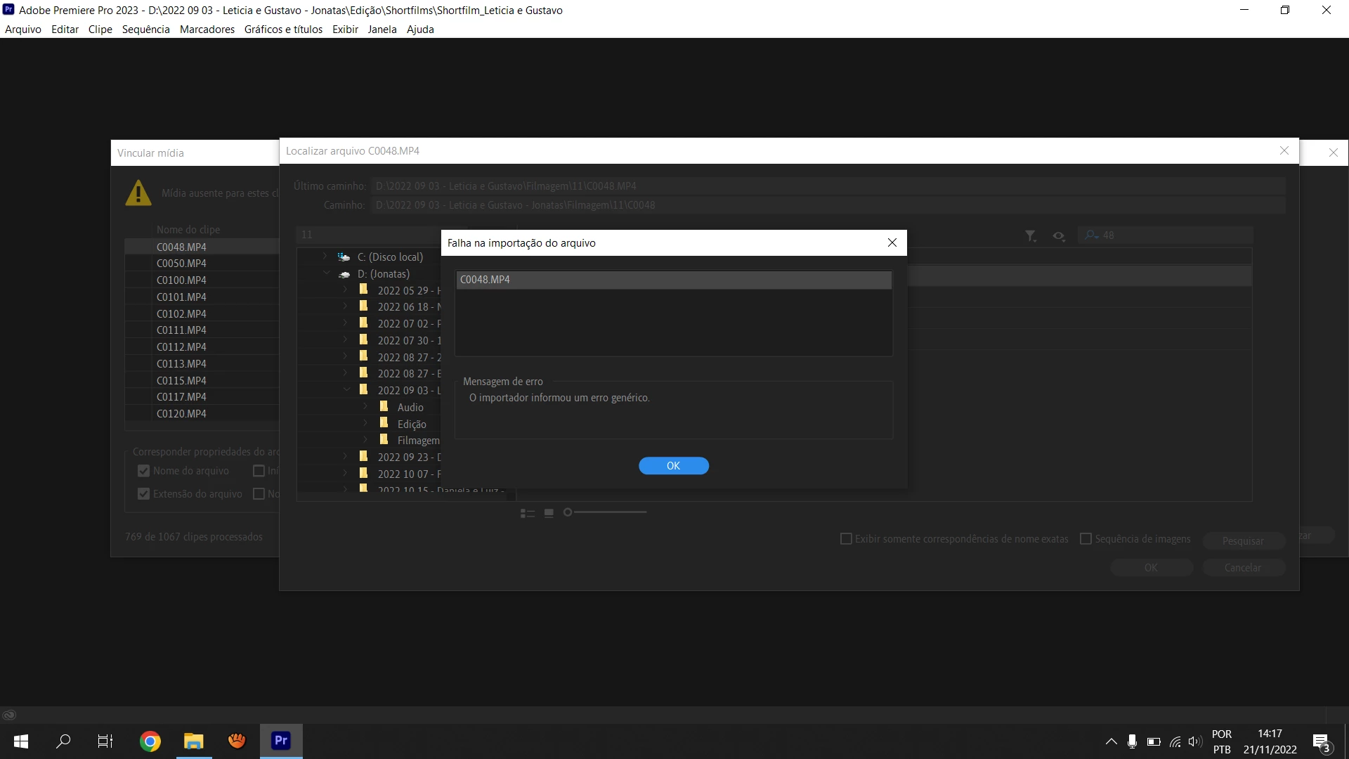 Does this solve the issue for you? https://community.adobe.com/t5/premiere-pro-discussions/premiere-v23-quot-the-importer-reported-a-generic-error-quot-when-relinking-media/m-p/13336531#M439741