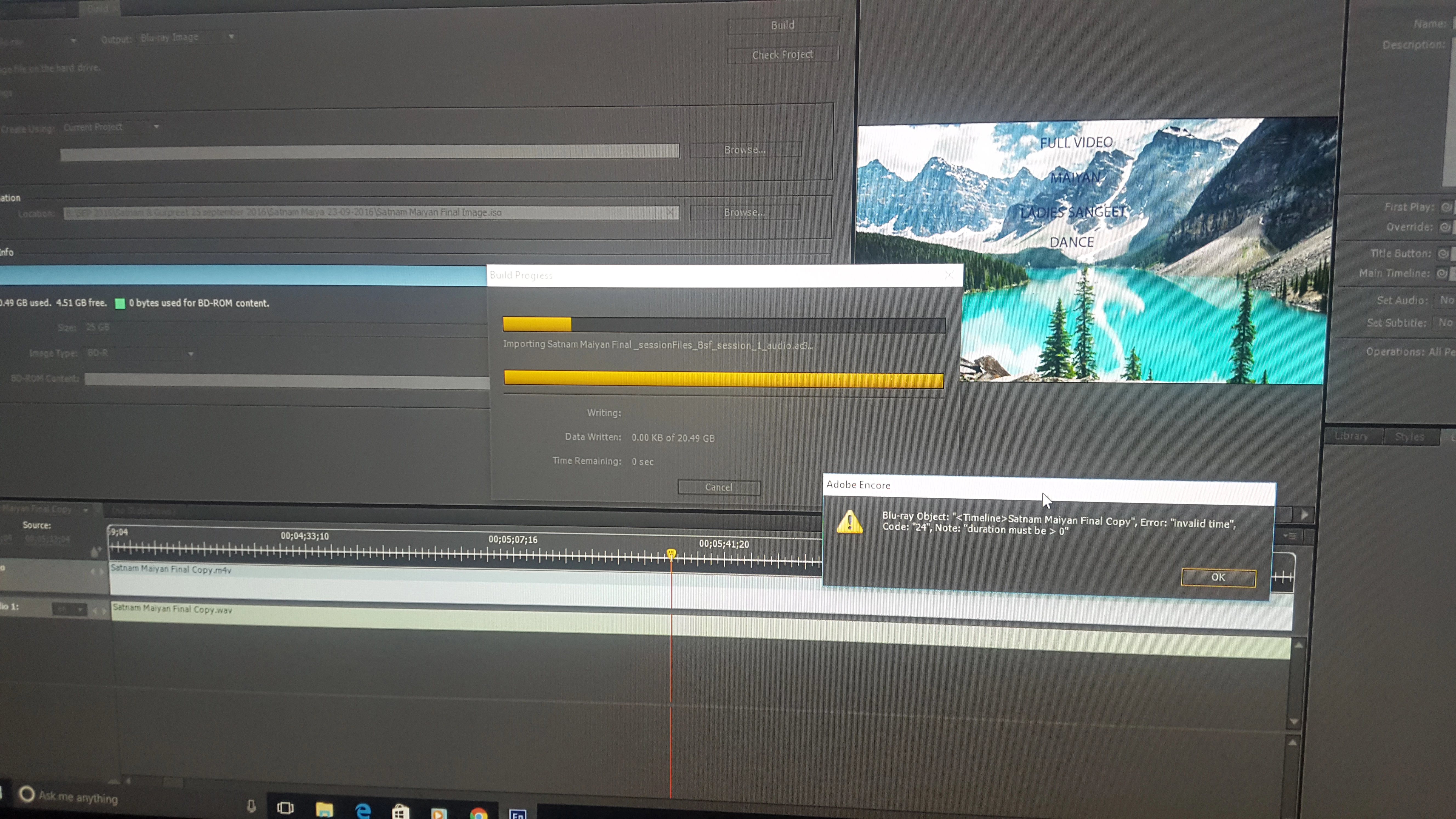 Please check error and my settings on Encore trying to make ISO of blu ray.