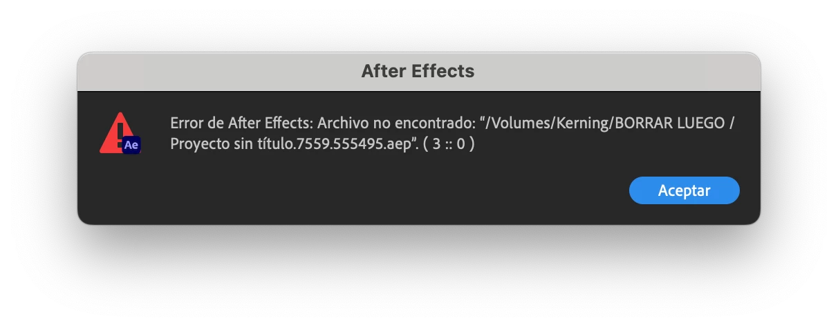 ERROR AL GUARDAR AFTER EFECTS DESDE ADOBE PREMIER