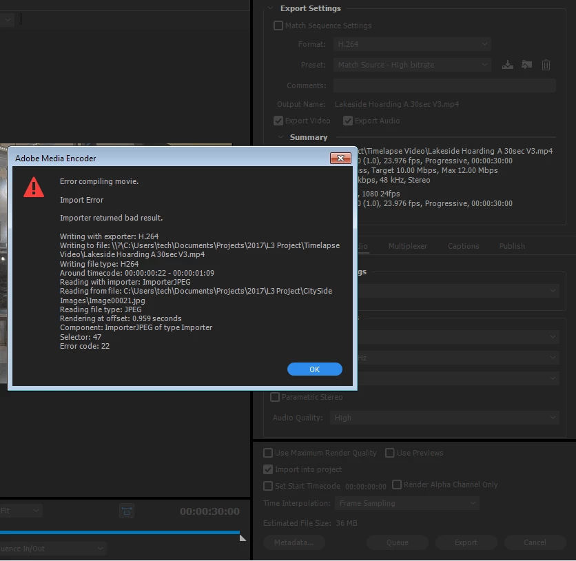I am getting error code 22 while exporting an image sequence. I have tried a few different ways but always getting the same error. please assist ![]()