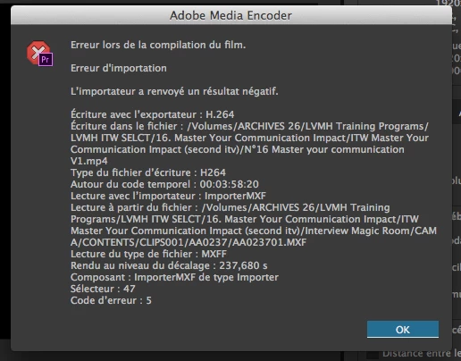 what i get as a message is : Error compiling movie - Import error - Importer returned bad result