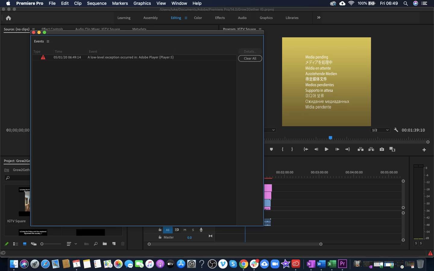 RreallukeburrowsParticipantForum|Forum|5 years agoMay 1, 2020AnsweredError in Premiere ProForum|Forum|5 years agoMay 1, 20202 replies1635 viewsHi guys Please see the attached screenshot as this is the error I keep getting in Adobe Premiere Pro and have no idea on what to do to fix it... please help and advise... thanks 🙂 Error or problem