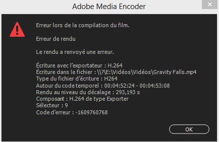 The error messages prevent me from working, and even force me to go through the task manager; these errors block the whole computer, and sometimes Première also tells me that I don't have enough memory allocated? Incomprehensible, my previous assemblies were exported without any difficulty.