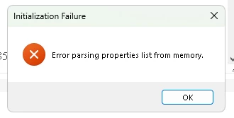 "error parsing properties list from memory"