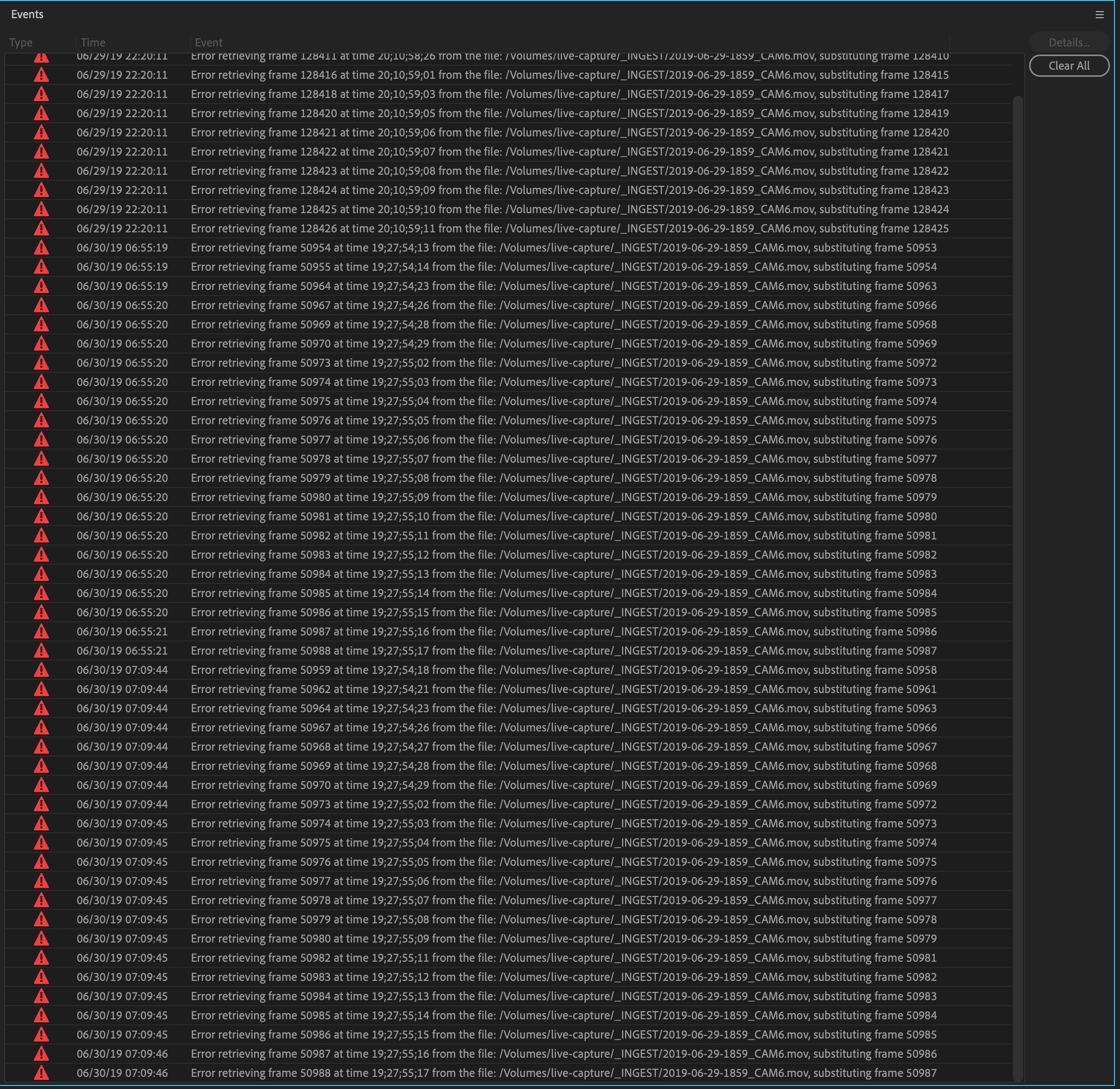 I am trying to footage taken at a recent event that I shot with one camera, I imported it into premiere pro cc 2019 and then exported it only to get this error message every few seconds.