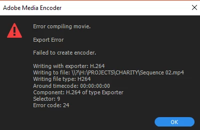 So I recently updated Adobe Premiere to the latest update as I was working a space with the 2017 version last week. When I opened the file on the computer I had just updated Premiere on, videos that I had imported had corrupted, and now when I try and import a video, all I can import is the audio. When I try and export the finished Sequence as well, I get this pop up. I have been looking over all the forums for solutions but to no avail.