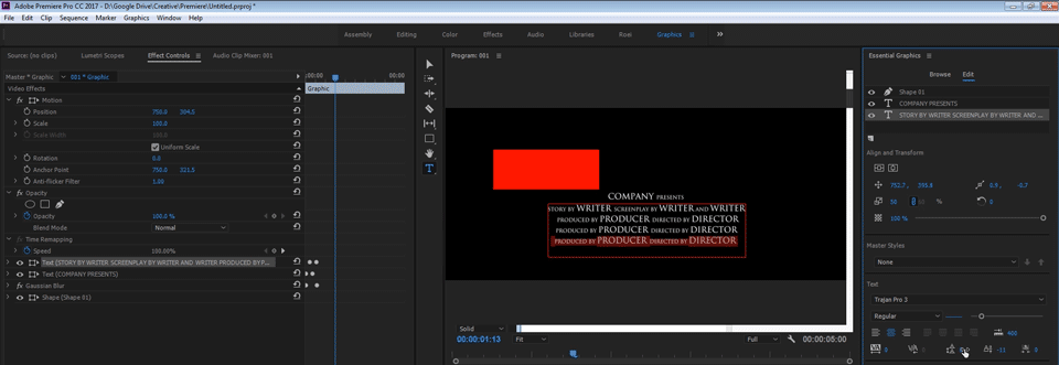 Hello, I create long credits titles in Essential Graphic and I want to scroll it from behind frame.