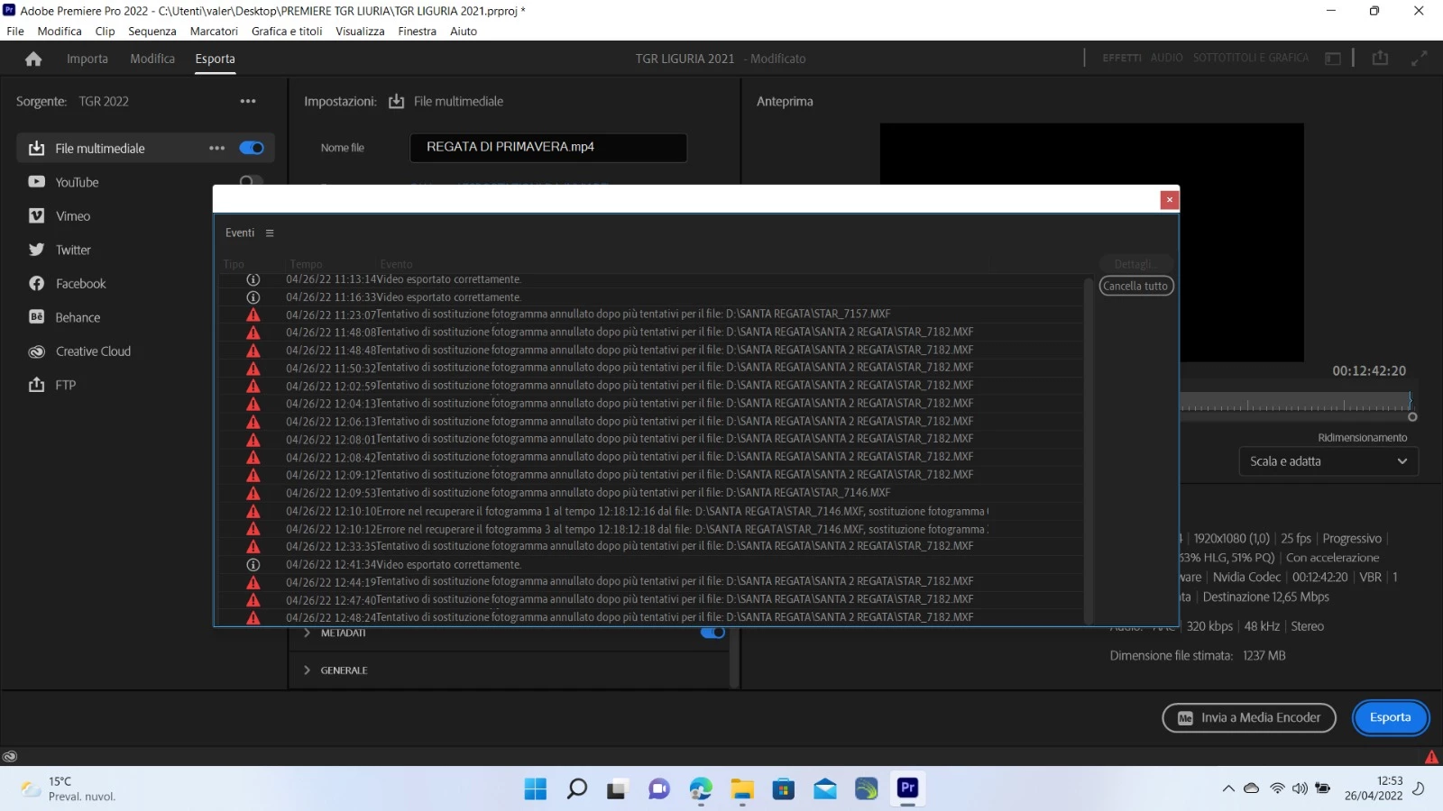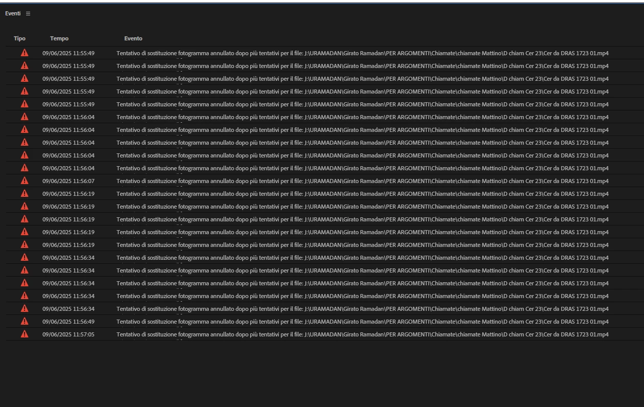Eventi | ''tentativo sostituzione fotogramma annullato dopo più tentativi per il file...''