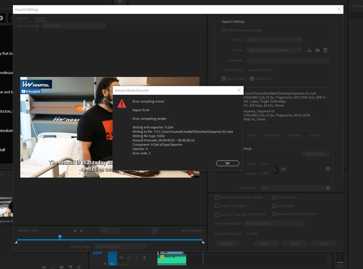 Export - Adobe media Encoder - Error code 3