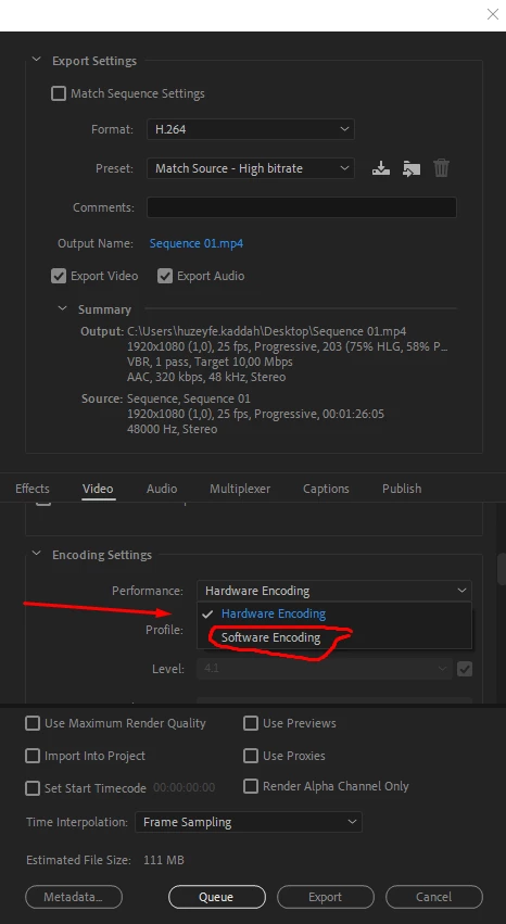 Hello guys, yesterday i updated my Pr to the last verstion, after that when i export any video they show to me that thir is an error in the adobe media encoder and the error code is 3, when i change encoding settings in performance section to hardware endcoding i get the export but the quality is not as the normal export, i am following som pic of my problem, maybe if any one faced this problem and solved it can help me.
