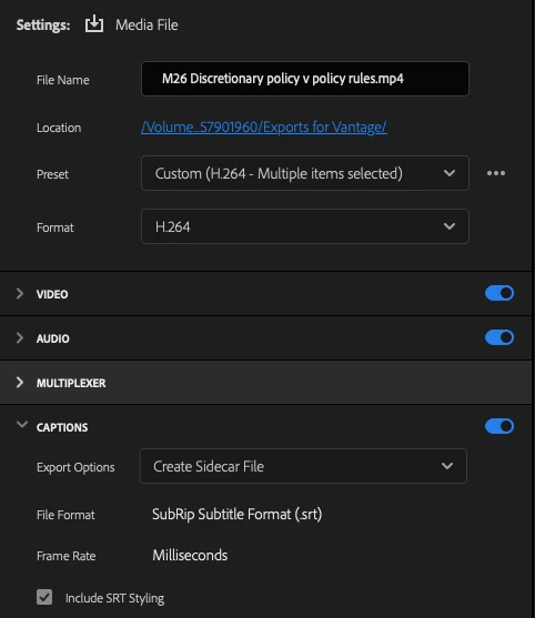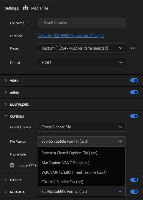When I export one video with a sidecar CC file, I can only make it an SRT, but if I choose multiple files to export, I can choose from SRT, SCC, MCC, XML, and STL. I'm on 23.6.4 temporarily—is this something that was later fixed?
