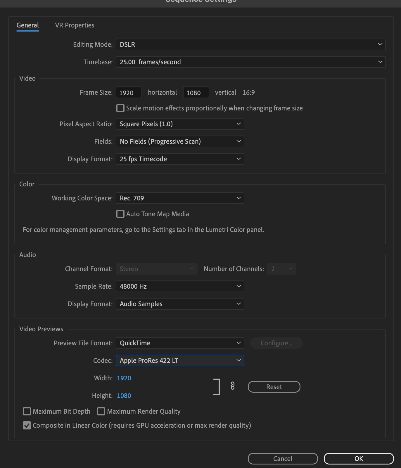 Hi Ann, seuqence settings and media info below