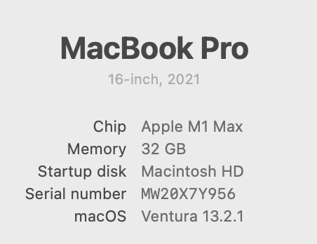 I'm running Premiere pro 23.3, Media Encoder 23.3, and Mac OS Ventura 13.2.1, computer details also below.