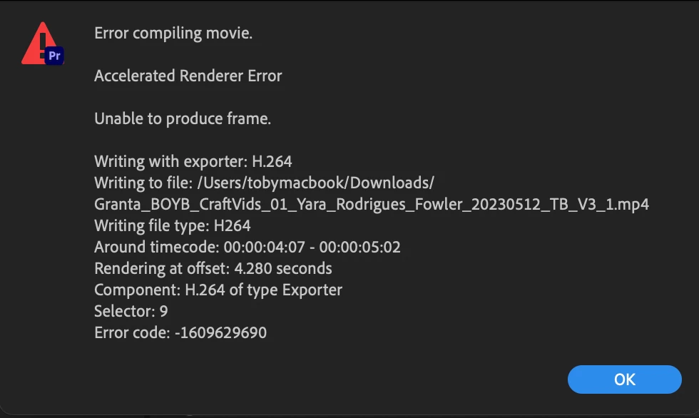 I'm trying to export a video - across either Premiere Pro or Media Encoder - and neither will export it. I can't find any info about the error online. Does anyone know what's happening nad how to solve?