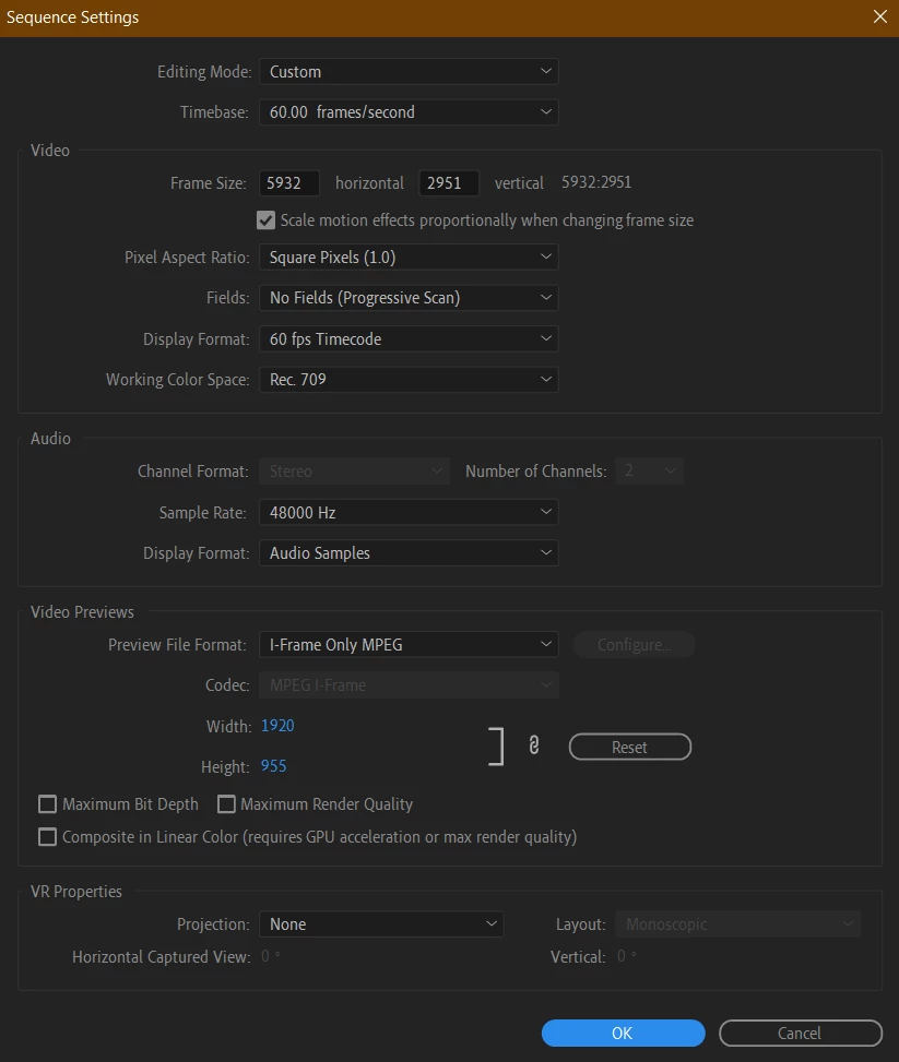 My Sequence Settings: