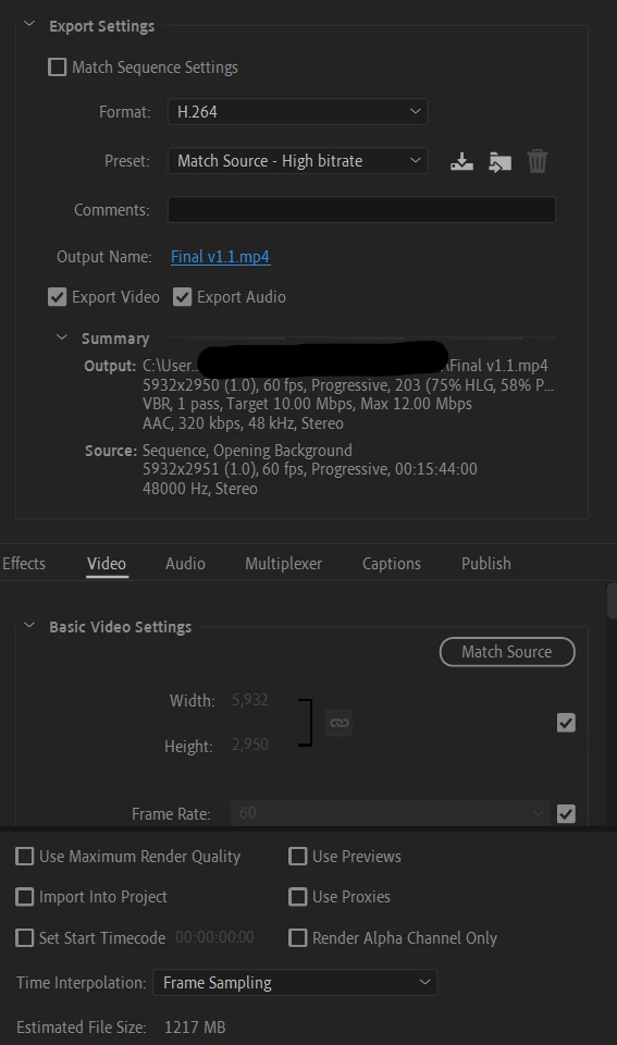 My Export Settings: