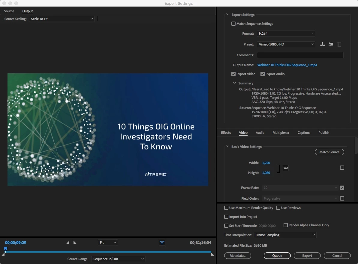 The source material for this project is an MP4 movie (video and audio) from a GoToWebinar, along with 3 different WAV files for additional audio.
