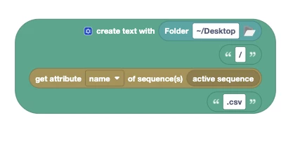 I am working with a script on Premiere and can't for the life of me export my sequence name to the spreadsheet using automation blocks. Is there a way to export my sequence name as the spreadsheet instead of "mySpreadsheet.csv"? It would be ideal if I could get a new spreadsheet for every sequence I export.