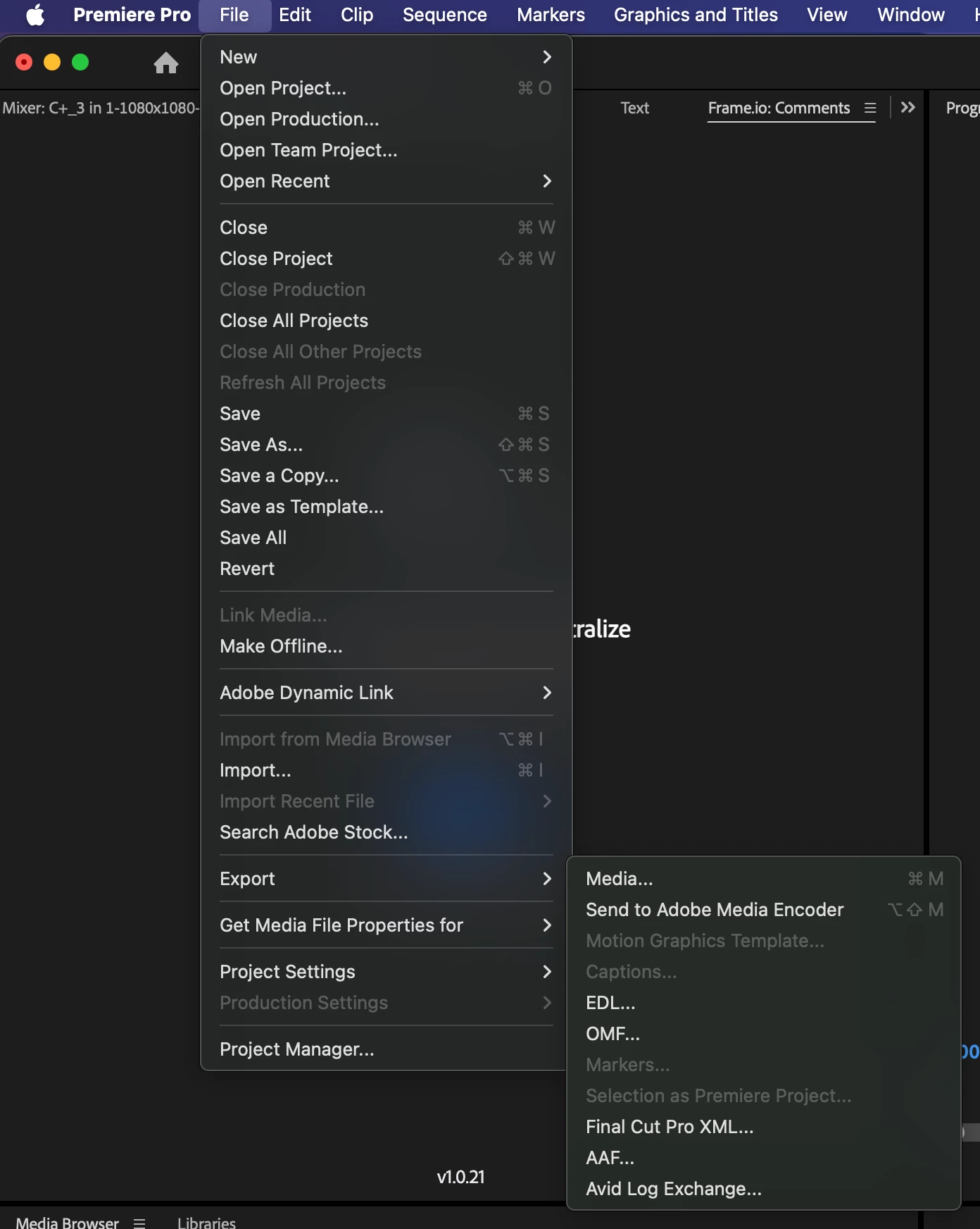 Please also ensure that your Sequence is selected when you go to File > Export > Media.